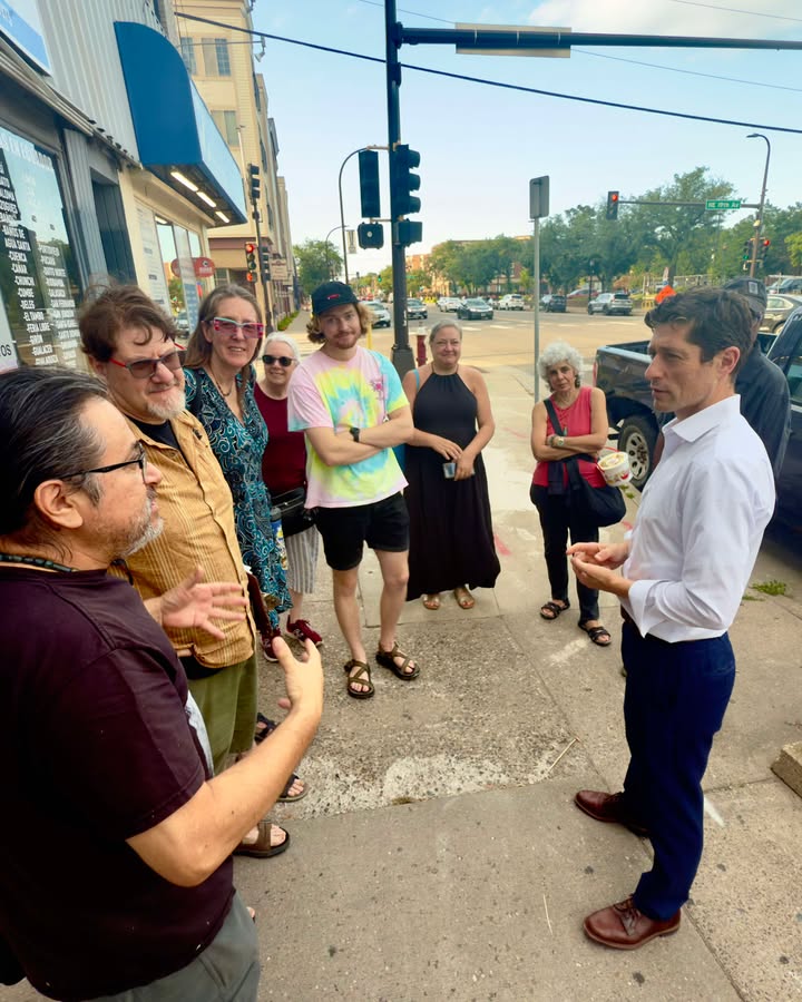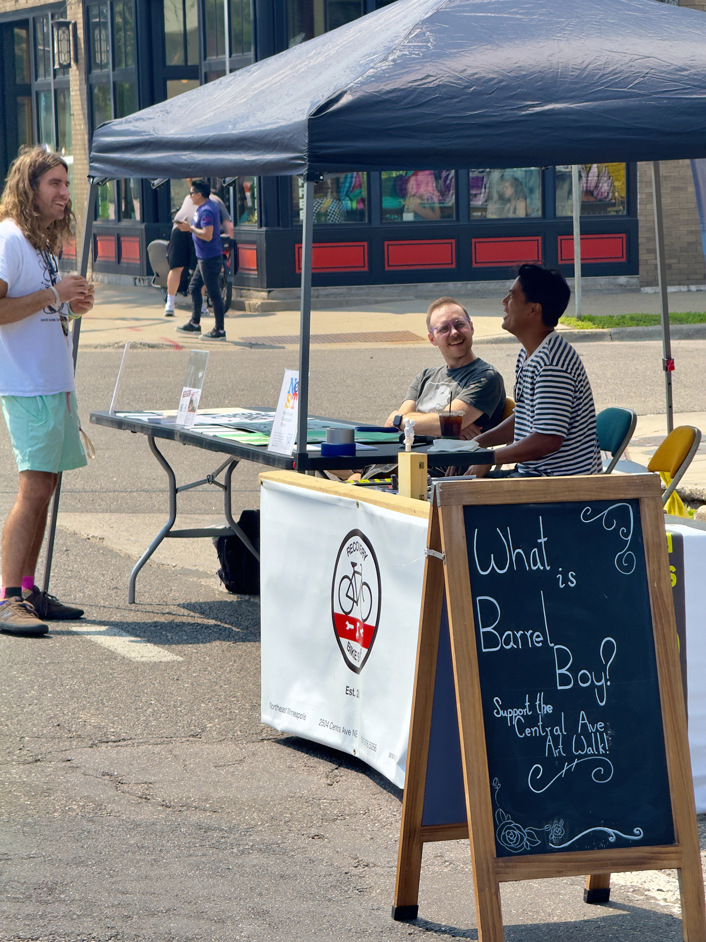 The Latest UpdatesDonate Here Reach out! NEXT STEP for the Central Ave Art Walk is SPACE. MNDoT's street reconstruction designs must include enough space for art pieces and weekly street market stalls. We need our city council (especially Northeast's Elliott Payne and Michael Rainville) to encourage MNDoT to expand the west sidewalk and boulevard area by 4' to accommodate these elements. We also want space for two "gateway" installations at the intersections of Central & Lowry and Central & Broadway, the gateways to the Northeast Minneapolis Arts District. (See our design mockups here.) - YOU CAN Write to the Mpls City Council and MNDoT. Here's our template for a letter of support for the art walk. STEP 2 is the installation of Barrel Boy climbing the side of Recovery Bike Shop. This massive sculpture by local artist Joel Sisson will be a billboard and a beacon, calling attention to our efforts in a fun and playful way. - YOU CAN Donate to the cause! We need a few thousand dollars to hire engineers, contractors, and electricians (and to pay Joel for his work). STEP 3 is drawing up the plans for the expanded pedestrian areas of the Art Walk. This is the nuts and bolts for electrical outlets, plumbing, art pads, green space, market stalls, and so on. - YOU CAN Donate to the cause! We'll need legit consultants to help us get through this step and those people are worth the money. - YOU CAN also give us your vision. What do you want the Art Walk to actually look like? ONGOING We need art! (This is the fun stuff.) We need to identify art and artists that will work on our new Art Walk! We need a criteria for making selections We will need a structure for maintaining the Art Walk over the long term. This is an entity to deal with the physical space, but also insurance and events and marketing and so on. This will involve a handoff from the pages of this site to the responsibility of a new group of people. And the next steps will come from there! - YOU CAN Donate to the Art Walk - YOU CAN Offer your ideas and examples for the Central Ave Art Walk - YOU CAN Participate in our events and join the conversation - YOU CAN Write to elected officials and other decisions makers and ask them to support the Art Walk - YOU CAN Get the word out! Share posts and talk about the Art Walk. 8/28/25 We talked about all things Art Walk with Mayor Frey during our weekly walk (meet at Reco Thursdays 5:30pm). This is critical because Central Avenue is a MNDoT project and the state does not care if Minneapolis has an art walk. Minneapolis city leaders (like the mayor and city council) need to advocate for the features and amenities that residents want on their section of Central Ave (or it just won't happen). Next week will be our third (of 3) explorations of Central Ave as a future Art Walk. All are welcome. We would like as many voices and visions as possible. ![]() Art Walk meeting on Central Ave 8/15/25 Attended the Dauntless Indigent Geography art opening at the Sculpture Factory. Talked up the Art Walk and handed out cards. Brought some artists and arts supporters up to speed. 8/14/25 Josh Blanc (NEMAD board) and I met with Council Member Payne and got some updates from his meeting with Public Works. They are now discussing advocating to MNDoT for an additional 4 feet of sidewalk/boardwalk space for the Art Walk. 8/13/25 Got Art Walk business cards printed (finally). Went to the Sheridan Neighborhood ice cream social and connected with MN State Senator Doran Clark (NE Mpls) who suggested writing a bill together for the Central Ave Art Walk. 8/12/25 Went to Counsel President Elliott Payne's office hours just to do a quick check in. 8/11/25 Attended the Minneapolis Arts Leaders Gathering & Vibrant Storefront Art Walk and connected with Mary Altman and Ben Johnson of the Minneapolis Arts & Cultural Affairs Department. 8/2/25 We had a table at the Central Ave Open Streets! So much fun talking to everyone. ![]() ![]() ![]()